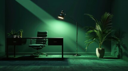 3D rendering, home office room with copy space, supplies and decorations, 3D illustration