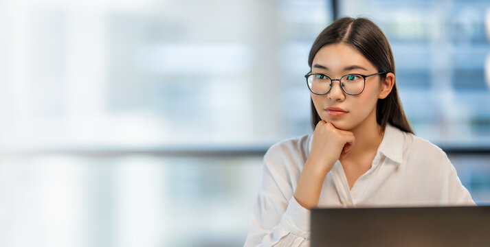 Focused asian architect examining scale model in modern office
