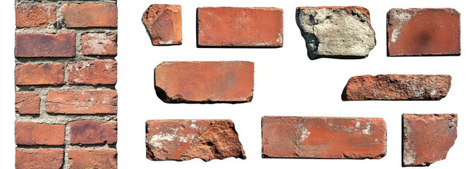old brick wall, red and white colour, broken bricks, peeling plaster, vintage texture, background for banner, copy space