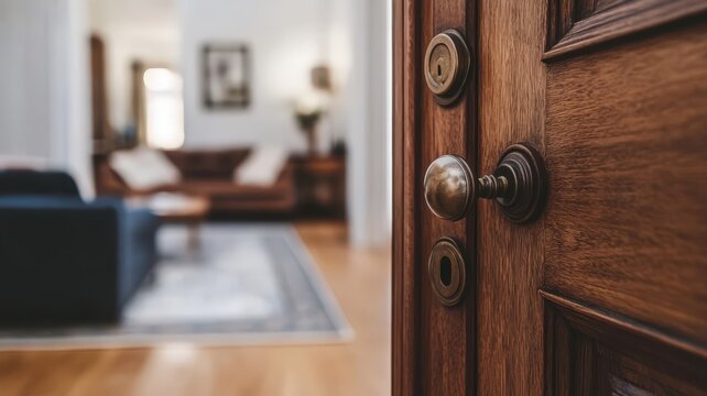 Door knob and keyhole made of brass