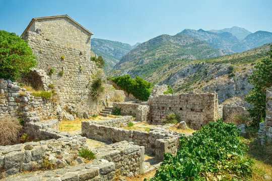 Medieval fortress with tower and crenellated parapets in trieste, italy