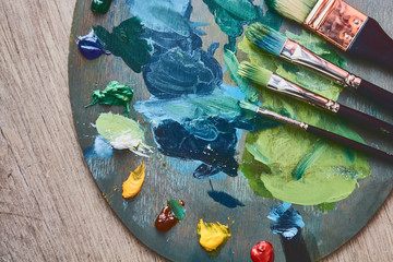 Brush artist and palette. Artist's workshop.