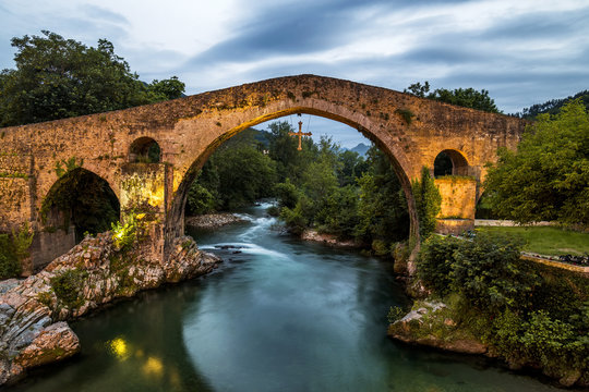 Old Roman stone bridge in Cangas de Onis (Asturias), Spain