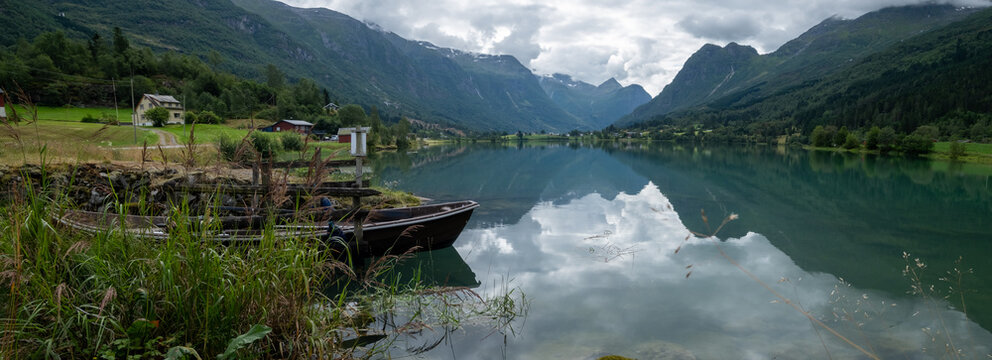 Panorama view of Olden, Norway.