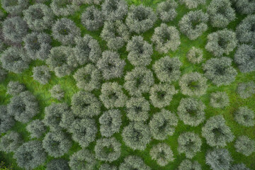 Olive grove aerial view. Top view of a grove of olive trees. Olive orchards in Italy. Aerial view of olive trees lake garda italy. Agriculture aerial view.
