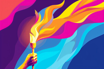 Olympic flame, torch in hand, art, poster, copyspace