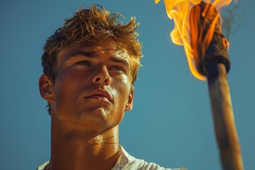 Sporty woman holding Olympic torch