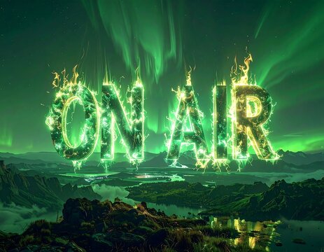 ON AIR 3D rendered word with large stylish text in gold embossed sign mounted on glossy marble wall. Banner image can be used for an online website banner ad or special promotions. Generative AI