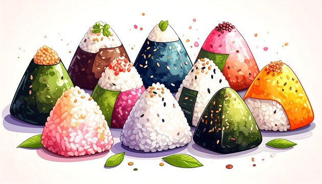 Assorted colorful onigiri