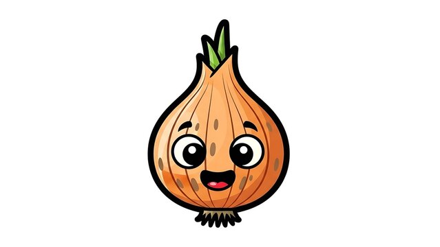 Cute cartoon onion character with large expressive eyes and a smiling face, standing against a vibrant pink background, showcasing a playful and whimsical design concept for food-related projects