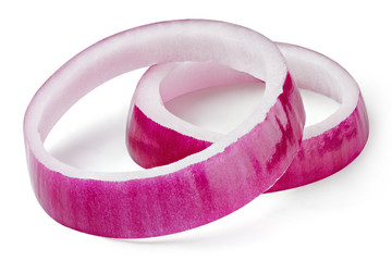 Red onion slices rings isolated.