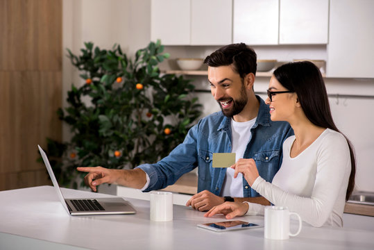 Cheerful young couple using online banking