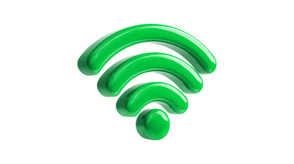 A glossy three dimensional green wireless internet symbol representing connectivity and a strong signal