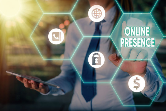 Text sign showing Online Presence. Business photo text existence of someone that can be found via an online search