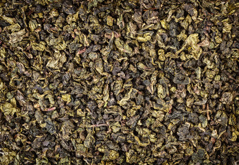 Dry green oolong tea in wooden bowl an isolated on white background with clipping path