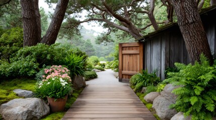 Ornate gothic gateway with gargoyles amidst mystical fog