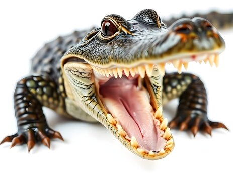 Shocked Baby Crocodile with Tiny Open Jaws, Isolated on White Background