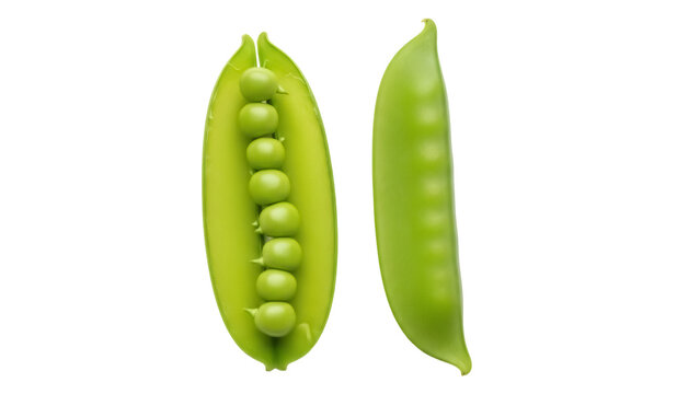 Fresh green peas in open pod isolated PNG, healthy vegetable ingredient for cooking and vegetarian diet on transparent background