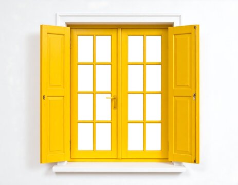 Vibrant yellow window with open shutters, a symbol of warmth and invitation