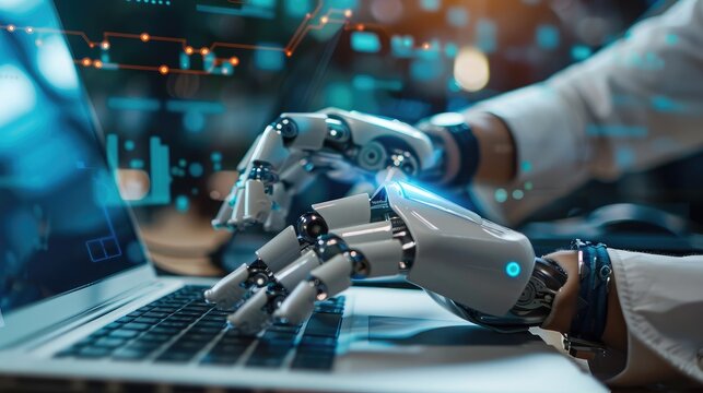 man using laptop for searching of technology smart open AI or artificial intelligence using an artificial intelligence chatbot developed.