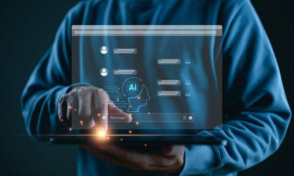 Chatbot conversation Ai Artificial Intelligence technology online customer service.Digital chatbot, robot application, OpenAI generate. financial investment stock market.Virtual assistant on internet.