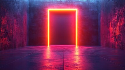 Futuristic Abstract Neon Door Frame. Generative AI