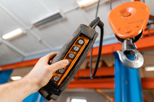 Worker Operating Industrial Chain Hoist