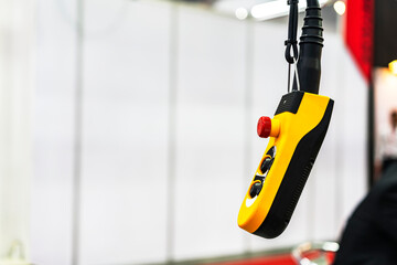 Yellow color electric remote switch control push button switch for hoist lift or crane for direction up and down forward backward or movement  in industrial work