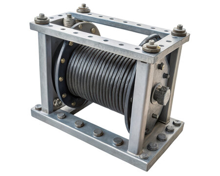 Man operating a control for an indoor crane hoist in a factory workshop with selective colour