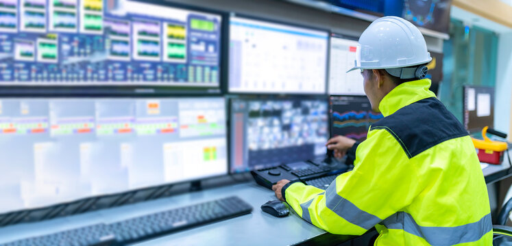 Cutting-edge control room with waveform analytics on display screens, seismograph concept
