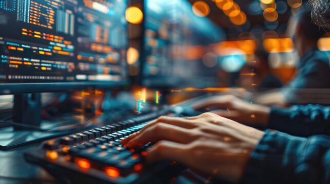Focused operator working in a command center
