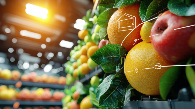 Digital graphs overlaying shopping carts in grocery store