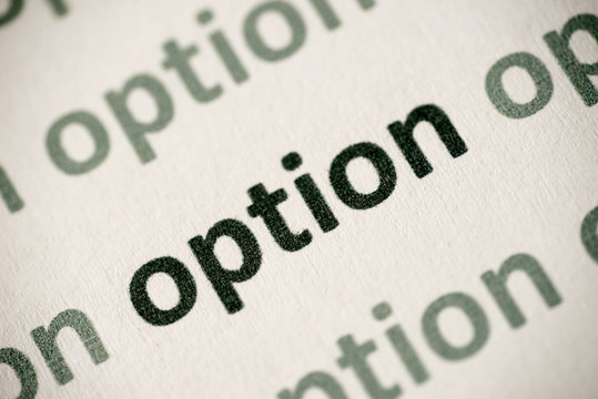 Option 1 or option 2. Hand turns a cube and changes the number '1' to '2' or vice versa. Word option on wooden cubes. Beautiful yellow table, white background. Business concept. Copy space.
