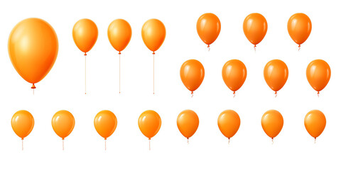 Collection of orange balloon isolated on a white background as transparent PNG