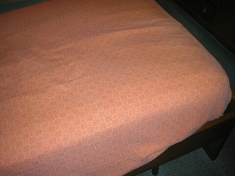 Rest or life in a couple unkempt queen size bed with torn linens and an orange blanket cover