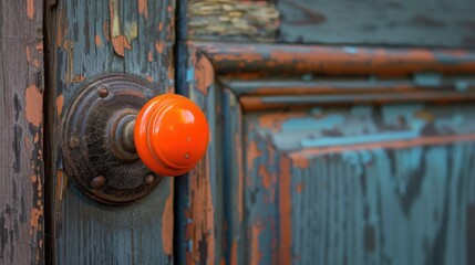 A striking detail a close-up of a door knob with an orange button. Ai Generated