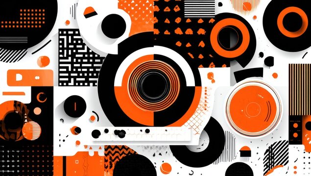 Geometric pattern featuring black and orange circles on a white background, ideal for modern design projects, wallpapers, or abstract art concepts.