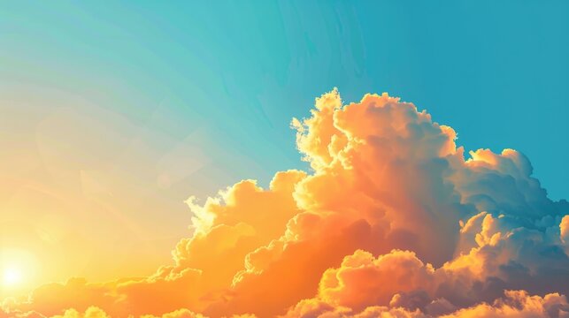Beautiful colorful sunset sky with orange clouds. Nature sky background.