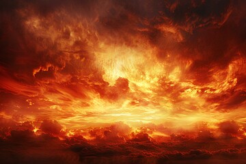 A captivating sky at sunset with dark red and orange clouds, creating a striking and moody atmosphere. The layered clouds add depth and intensity to the scene.