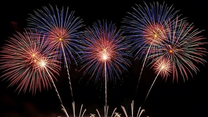 Vibrant fireworks exploding in the night sky with colorful bursts