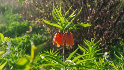 The royal duckweed, an orange flower in the sunlight. Fritillaria imperialis