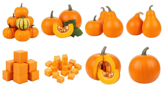Rustic Autumn Dining Flatlay with White and Orange Gourds, Oak Leaves, and Cloudy Accents" with white background