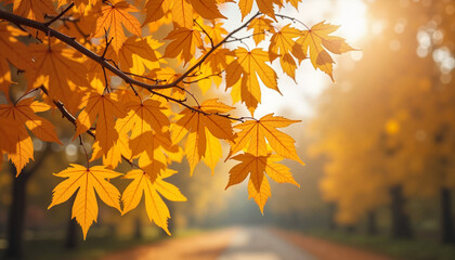autumn leaves in the forest seasonal abstract background with bokeh fall leaves golden orange red backdrop leaves in the park