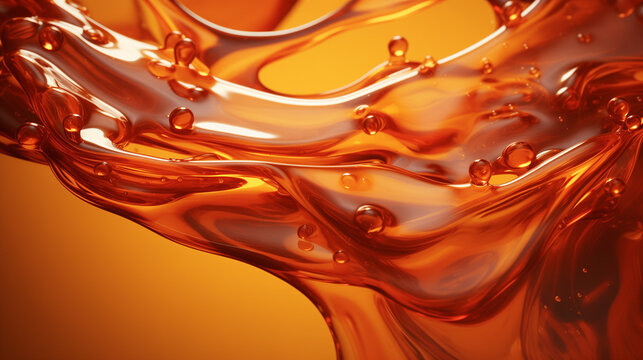 A liquid wave of clear oil. A bright splash of orange liquid. Abstract shining background for design.