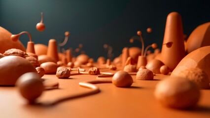 Vibrant abstract digital landscape with glowing red and orange particles on a dark background, futuristic technology concept with bokeh effect