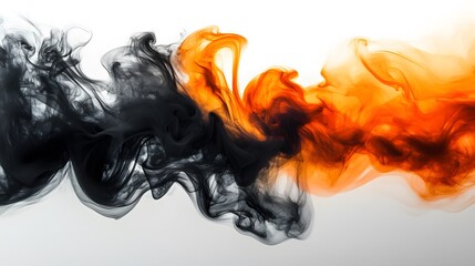 Surreal black and orange smoke with cosmic textures, isolated on white background