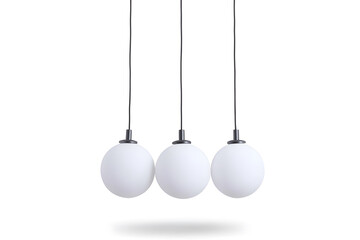 Modern chandelier with a cluster of hanging white glass orbs isolated on white background