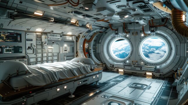 Spacecraft in orbit with earth's horizon view