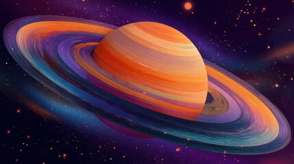 Pastel saturn-like planet with metallic rings on vibrant gradient cosmic background
