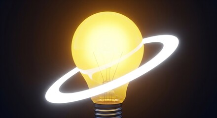 Glowing lightbulb orbited by bright ring against a dark background, creating a science fiction aesthetic